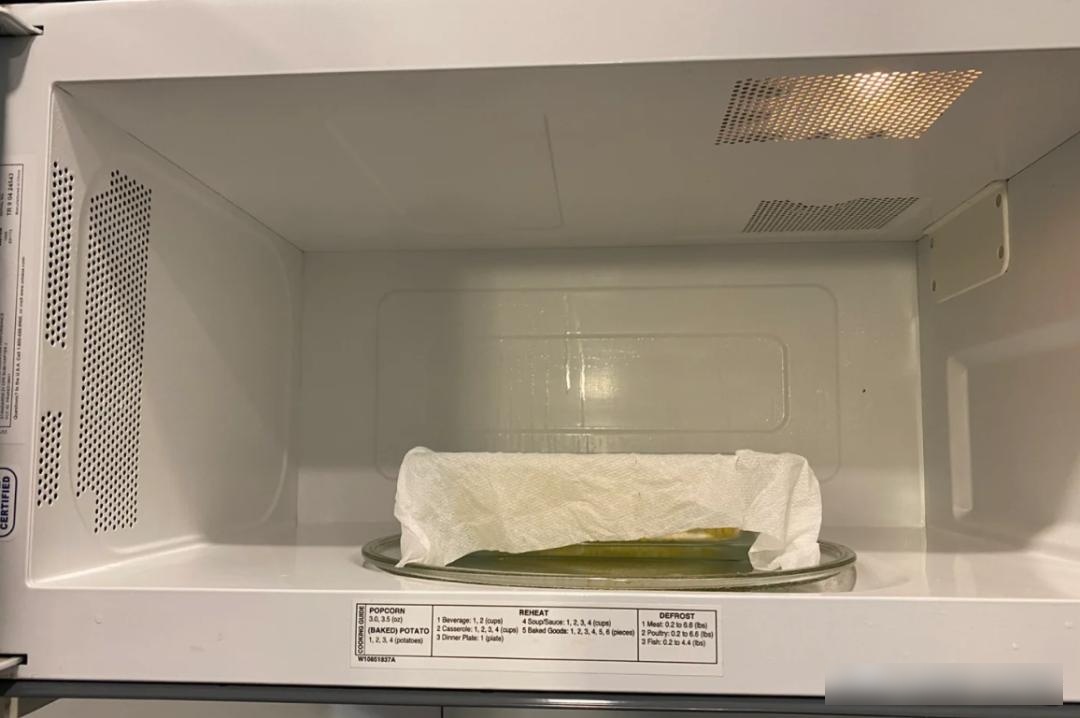 应为,微波炉里面还有余温的时候,擦洗起来非常轻松。随便用纸巾,就可以把附着的脏污、油脂给擦下来。