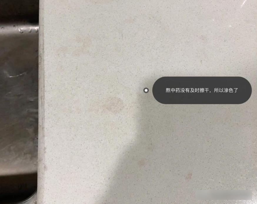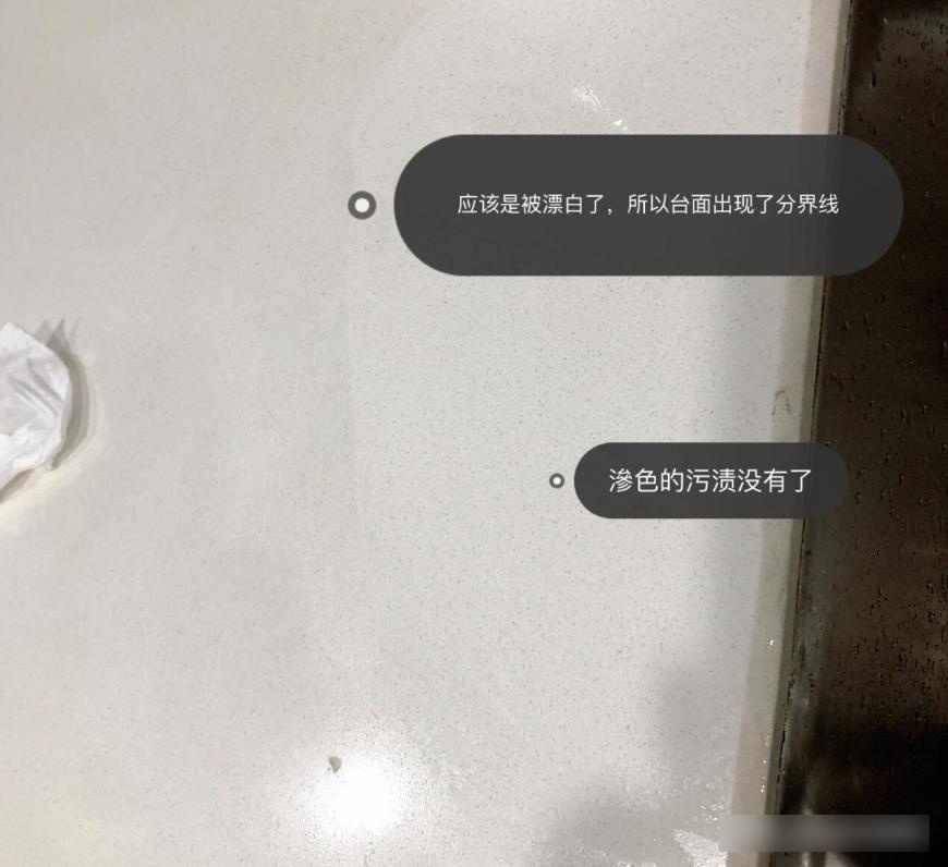 等第二天就会发现,台面上的渗色变淡。这个时候,只需要轻轻擦拭,就可以变得干干净净。